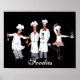 An original watercolor painting by Anne Ormsby of chefs and waiters adorns this humorous poster.