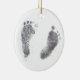 Celebrate the precious moments of your little one's arrival with this adorable baby footprint ornament. Crafted in pure white, this keepsake ornament puts the focus on the tiny, delicate footprints that capture the essence of your baby's first steps in a world of wonder. The contrasting baby footprints make this ornament a heartwarming addition to your holiday decor or a cherished year-round memento.