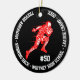 Create a personalized football ornament for your favorite school team player. Features a running football player going all the way to score a touchdown! Add your players team number, championship status, year, school name or other customized text. Black , white and red design is perfect for your holiday Christmas tree.