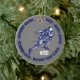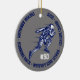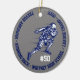Create a personalized football ornament for your favorite school team player. Features a running football player going all the way to score a touchdown! Add your players team number, championship status, year, school name or other customized text. Gray , white and blue design is perfect for your holiday Christmas tree.