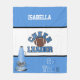 Cheerleader themed fleece blanket done in sky blue and white, with silver and black accents. Graphics of a football, megaphone and graphic text decorate this bleacher warming blanket. Personalize the white name, at the top, for your favorite cheerleader.