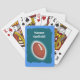 A deck of playing cards designed for football fans or players. Zazzle automatically labels them poker cards but, of course, they are good for any card game. The design features a football highlighted in white on a dark background. Distinctive, blue, irregular border. Personalize it with a name. The name is easily changed by using the template. Selecting “Personalize this design” offers you several edit options to easily change the text (wording, plus type font, color, size, position) and to edit the design elements. You may also want to scroll down to the section “Transfer design to a product” for a few suggestions about other items this design can be used on.