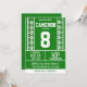 This party invitation features an American football theme, with a green football field placed as the background. The yard lines of the field are placed along the sides, with the age of the birthday child printed in the center. The age is printed in a large sports font made to resemble a jersey number.