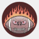 Mean and evil football with pig nose, red eyes, stitched mouth and hot-rod flames. Dot coloring, with "high gloss" highlight. All shirts, all sizes.