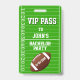Football themed bachelor party accessory badge with graphics of a green football grid and a brown football. Personalize the white text fields to suit your needs. Great for birthday parties and bachelor parties.