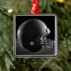 A football helmet is a protective device used primarily in American football and Canadian football . It consists of a hard plastic top with thick padding on the inside, a face mask made of one or more rubber coated metal bars, and a chinstrap. Some players add polycarbonate visors to their helmets, which are used to protect eyes from glare and impacts. Helmets are a requirement at all levels of organized football, except for non-tackle variations such as flag football . Although they are protective, players can and do still suffer head injuries such as a concussion . Each position has a different type of face mask to balance protection and visibility.