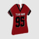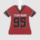 Red, black and white football jersey with custom name and number. Change number and names as preferred.