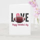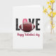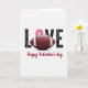 This design shows the word “LOVE” spread large across a white background, mixing Valentine romance with a football twist 🥰. The “L” and “E” are deep black with a worn, textured look that gives the letters extra character. The “V” pops in a rich pink, adding a sweet contrast that feels like a blush against the darker letters ❤️. In place of the “O,” a detailed red-brown football sits at the center, with white stripes and bright laces that make it look ready to be tossed. The sporty centerpiece paired with the pink letter creates a cute, affectionate balance, like two people bonding over the same game day tradition. Beneath the big word, the line “Happy Valentine’s day” appears in a flowing maroon script along the lower portion of the card. The football’s subtle shine and the crisp white space around everything make the colors and textures stand out clearly.