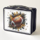 This is a standard metal lunchbox that appears to work just fine. We designed this box ourselves with an uploaded photo and custom text on the front and back. It looks absolutely beautiful except the front of the lunchbox is not centered like it shows in the photo. The print borders don't align with the inset flat part of the box where the preview photo online showed it perfectly centered in there. The back looks nice and centered though.