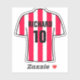 Football sticker. Football shirt design in Red & White Stripes. Personalized with your choice of name and number.