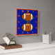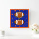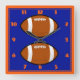 A Football that's bright and colorful that's on a Square Wall Clock.