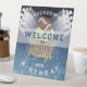 "Touchdown! Celebrate your football enthusiast's special day with our exclusive Football Birthday Design. At the center, a delightful green cupcake decorated with a football topping awaits, inviting guests to “Join us to kick off “the celebration. Personalized with the birthday child's name and age. This design is a guaranteed touchdown. Set against a backdrop of watercolor gradient dark blue to white, resembling a sky with floating clouds and a faint, transparent football field, the atmosphere is illuminated by floodlights on the top left and right, adding to the excitement of the occasion. Giving the ideal football night atmosphere. It's the perfect Welcome Sign for an unforgettable football-themed birthday bash!" Wonderful birthday party for boys. For a themed football party check out our matching items in the “Football Touchdown Birthday Party” collection.
