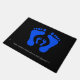 Stylish and fun doormat featuring adult and children's footprints in blue with a reminder to get your keys, wallet, mobile phone and glasses :)