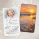 These memorial prayer cards feature the editable beloved Footprints in the Sand poem set against a peaceful beach sunset, paired with a softly faded photo tribute. A simple cross at the top adds a gentle expression of faith, while the shoreline imagery reflects comfort, guidance and God’s presence through every step of life. Thoughtfully designed for a funeral, memorial service or Celebration of Life, these cards offer family and friends a meaningful keepsake honoring a life remembered with love and faith. Small and portable size of 3.5x2" (wallet-sized). Personalization makes these cards unique.