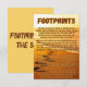 This greeting card showcases a design that features the footprints in the sand prayer in a gagalin print font with maroon colored letters and yellow outline over a picture displaying a set of footprints in the beach sand leading into the ocean under a bright sunny sky in this faith based prayer quote theme plus the words "Footprints In The Sand" on the back with a yellow reverse back with maroon letters. Made with high quality, full color printing on a 3.5" x 5" (portrait) or 5" x 3.5" (landscape) matte paper made and printed in the USA.
