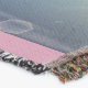 A quality printed throw has its advantages. This is a much finer weave throw than its loopier cousins, and though lighter, it is worth the investment for custom room accessorizing. The back is much prettier than the typical brown, and the fringe on the long sides very vivid, the selvage nicely done. Before photographing, I washed the throw in cold water, delicate, with a thicker woven throw the same size. On tumble dry low, this throw was dry in half the time as the other. This is a very practical quality if you use throws for furniture covers or to wrap up in frequently. The sleekness of the fabric makes it a great layer for accenting or protecting without the feeling of sitting on too much stuff. Perfect for napping or when you feel a light chill coming on. The color printing is beautiful and on this fabric, matched the design and color of my Photoshop image. This is an advantage for blending room fabrics and colors. The fringe on the short sides prints the colors from the design image and therefore varies from the side fringe. I streaked a white fractal line through the plaid pattern to give the illusion of weaving. This printed as crisp as an illusory thread, and put some white in the short side fringe, showing another advantage of print vs loomed- for artistic purposes, line lines, detail, and color integrity can be planned and preserved. My loomed throws have color limitations and more of a needlepoint texture. Print throws reproduce an exact image. The throw felt a little stiff straight out of the package, but this went away in the first delicate wash. Of course I searched the wash water for ink or bleeding and there was none.