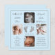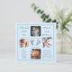 Create a birth announcement that is as unique as your precious child with this "Hello Little One" four photo design featuring your baby's name, birth statistics, parents and siblings' names. In the center are two template lines for your personal message or you can use ours. This messaging is on top and bottom of your child's optional footprints (add left and right separately). All text and background colors can be modified as desired. Shown here in blue. Design by Holiday Hearts Designs (rights reserved) with template placeholder photos via Unsplash.