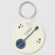 Add a name or other custom text to this keychain to create the perfect personalized gift for banjo players. Features a simple illustration of a banjo in navy blue along with some blue star accents set against a cream colored background with your text in matching blue lettering.