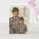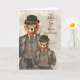Like father like son, we bear a resemblance. A fun Father's Day card from Dad's son, featuring two dressed up bears in retro attire, with the 'boy' blowing bubbles from his pipe.