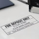 This stamp provides high performance with thousands of sharp, deep black impressions, and its sizing is perfectly fit for standard check endorsement areas. The arrangement prioritizes the account number immediately after the “For Deposit Only” header, which is standard practice to ensure immediate clarity for bank tellers and automated systems, streamlining your banking process.