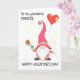 For Fiancee Valentine's Cute Gnome with Red Rose Card