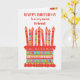 You can add the age to this brightly colored birthday card for your friend, with a strawberry birthday cake. The cake has lots of candles with different patterns and there is a patterned band around the cake with colorful summer fruits - strawberries, raspberries, limes and orange slices. Above the cake, the greeting, in red lettering, is 'HAPPY BIRTHDAY to a very special Friend' and on the cake there is a space for you to add the age, followed by 'years old today!' in white lettering. Please feel free to customize the inside message if you wish; you can change the font and the color as well as the message.