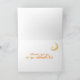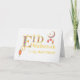 A stylish greeting card for your friend, with decorative lettering outline in gold-effect and filled with brightly colored islamic patterns. The front cover greeting is, 'Eid Mubarak. to my dear Friend!' There is a brightly colored lantern in the bottom left corner, hanging underneath the letter 'E' and a patterned moon and star in the top right hand corner, with two more lanterns and an Islamic Star suspended from the moon. The white background on the front cover is lightly textured and the inside message is just a suggestion which you can easily change or delete if you wish.