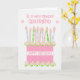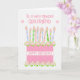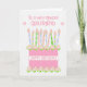 A very pretty birthday card for your girlfriend with a pink birthday cake with lots of patterned candles. The cake is pink, with a polka dot pattern and decorated with clusters of pink, Albertine roses, painted by hand in watercolour. 'Happy Birthday!' is written in matching pink on a white band around the cake. Above the candles, it says, 'To a very special GIRLFRIEND' with a tiny pink heart at each end of the word, 'GIRLFRIEND'. The inside message is just a suggestion and you can easily edit it or remove it, if you wish.