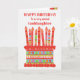 You can add the age to this brightly colored birthday card for your goddaughter, with a strawberry birthday cake. The cake has lots of candles with different patterns and there is a patterned band around the cake with colorful summer fruits - strawberries, raspberries, limes and orange slices. Above the cake, the greeting, in red lettering, is 'HAPPY BIRTHDAY to a very special Goddaughter' and on the cake there is a space for you to add the age, followed by 'years old today!' in white lettering. Please feel free to customize the inside message if you wish; you can change the font and the color as well as the message.