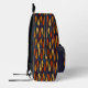 This fun backpack features a pattern of juggling clubs. The realistic style pen and ink illustrations are in red, yellow, orange, green and blue and set against a navy blue background. The front pocket is ready to be personalized with a name, initials or other text.