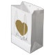 Send your darling Bride a gift on her big day in this super chic gold glitter heart gift bag.