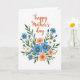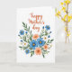 This card features a soft watercolor-style bouquet of mixed flowers and leafy stems gathered into a loose, flowing cluster on a white background. Cool blues, gentle peach-coral, and crisp whites mingle across the petals, and many blooms show small yellow centers that feel like little sparks of affection ❤️. Green leaves and thin stems weave through the arrangement as if two friends just picked them together from a sunny garden path. The bouquet’s curved edges and a few tucked-in buds add a quiet, romantic sense of closeness, like a tender pause before the flowers fully open. Near the top, a short line of text sits centered above the flowers in warm rusty-orange lettering. The letters are smooth and flowing, standing out clearly against the open white space and guiding your eye down into the blossoms 🌼. Subtle washes of color create gentle shading on each petal, and a couple of unopened buds peek out along the sides of the bouquet.