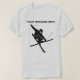 Add a name, a clever saying, or your favorite skiing spot to create your own custom graphic tee. Your message appears in bold black lettering above a silhouette style illustration of a skier performing a ski trick.