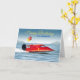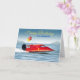 56th birthday greeting card for a son, featuring a photo of a high performance racing boat. A lake, mountains, and birthday balloons with the number 56 written on the side of the boat. Art, image, and verse copyright © Shoaff Ballanger Studios, 2025.