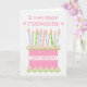 A very pretty birthday card for your step daughter with a pink birthday cake with lots of patterned candles. The cake is pink, with a polka dot pattern and decorated with clusters of pink, Albertine roses, painted by hand in watercolour. 'Happy Birthday!' is written in matching pink on a white band around the cake. Above the candles, it says, 'To a very special STEPDAUGHTER with a tiny pink heart at each end of the word, 'STEPDAUGHTER'. The inside message is just a suggestion and you can easily edit it or remove it, if you wish.