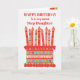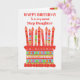 You can add the age to this brightly colored birthday card for your stepdaughter, with a strawberry birthday cake. The cake has lots of candles with different patterns and there is a patterned band around the cake with colorful summer fruits - strawberries, raspberries, limes and orange slices. Above the cake, the greeting, in red lettering, is 'HAPPY BIRTHDAY to a very special Step Daughter' and on the cake there is a space for you to add the age, followed by 'years old today!' in white lettering. Please feel free to customize the inside message if you wish; you can change the font and the color as well as the message.