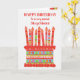 You can add the age to this brightly colored birthday card for your stepsister, with a strawberry birthday cake. The cake has lots of candles with different patterns and there is a patterned band around the cake with colorful summer fruits - strawberries, raspberries, limes and orange slices. Above the cake, the greeting, in red lettering, is 'HAPPY BIRTHDAY to a very special Step Sister' and on the cake there is a space for you to add the age, followed by 'years old today!' in white lettering. Please feel free to customize the inside message if you wish; you can change the font and the color as well as the message.