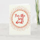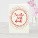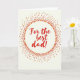 This card features a soft ivory background with a ring of scattered dots around the edges, like confetti floating in the air. The dots vary in size and come in shades of red and orange, giving the border a warm, lively look. In the center, the text reads “For the best dad!” across three lines. The lettering is red and looks like smooth, flowing handwriting, making it feel friendly and sincere. With the bright border surrounding the message, the whole design feels like a small celebration of love and appreciation. It’s meaningful to give because it keeps the focus on a simple message while still feeling special and cared for. Add it to a gift or give it on its own to show you’re thinking of someone in a tender way 🥰❤️.