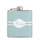 Very cute "Polka Dot Hip Flask". White polka dots on a sea foam green blue background. A pretty ribbon, with a matching bow on the back. The text sample shows "Bride" on this whimsical flask, customize the text to suit your needs. Makes a wonderful "bridesmaid thank you gift". Don't forget a "wedding flask" for all the bridal party including the groomsmen and groom! To see more great products-Please visit my store "The Hungarican Princess" at www.zazzle.com/hungaricanprincess*.