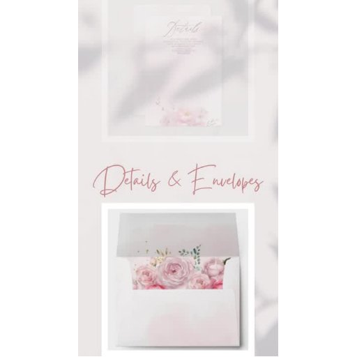 Plain white envelopes are included with paper invitations and will come to fit the invitation size you select. If you don’t need the envelopes, you may choose to not receive them by selecting the dropdown below "Envelopes" and choosing "None." If you’d like to have a design on your envelopes, you can browse all of these available envelopes to find the design that complements your For Vellum Overlay Spring Blush Floral Wedding Invitation.