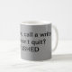 Perfect for the writer in your life! Classic white mug with the words "What do you call a writer that doesn't quit? PUBLISHED." Available in 11oz and 15oz sizes, and a variety of colors. Dishwasher and microwave safe. Makes a great gift!