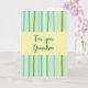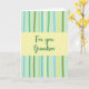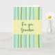 Designed with a tender springtime look, this card centers on a wide horizontal band of soft yellow that feels like a sunny ribbon across the middle. In the middle of that band, the words “For you Grandson” are written in deep green lettering, standing out clearly against the warm background. Above and below, vertical stripes line up in a relaxed pattern, giving the layout a friendly, close-to-home feel, like something chosen with care for someone you’re fond of. The stripes sit on a muted aqua field and shift through light lime, olive green, sky blue, and creamy off-white, creating an easy, nature-inspired mix 🌷. Their slightly uneven, drawn-by-hand edges add texture and a gentle sense of closeness, as if the design is leaning in for a quiet hello. The cool blues and greens balance the yellow center, keeping the whole front calm but cheerful, with a light Easter touch 🐰. The striped sections frame the yellow band at the top and bottom, with each stripe running straight up and down against the soft aqua background.