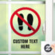 Forbidden foot steps no shoes allowed sign window cling. Custom round sign for home, office, hotel, hospital, practice, school, company, door, hygiene room, hygienic bedroom, gym, fitness, court, shop, dojo, play area, yoga class, swimming pool, shower area, sauna, shop etc. Red circle with white stripe prohibited symbol. Add your own text or icon optionally. Also useful for indoor squash courts where black soles are not allowed. Only non marking sport shoes.