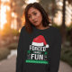 "Forced Family Fun" Christmas humor typography with big red Santa Claus hat on top, with a bit of the ugly sweater style.