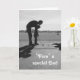 A golf-pun themed birthday card for a Dad, perfect for the father who loves golfing. The image is a nostalgic black and white photo of a dad showing his small son how to swing his golf club at a driving range. The message inside and out can both be personalized. Inside reads, "Happy Birthday to a hole-in-one Dady! We love you very much!" Photo by Letizia Morley.