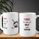 Funny golf and coffee slogan which you can personalize. The bold typography design on the front and back reads "fore! the love of golf and coffee". The side of the mug has a golfing themed badge which you can personalize with a name or best dad ever for example. Useful gift for coffee loving golfing dad or partner for father's day, birthday etc. To change the colors, edit using the design tool.