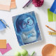 I was super excited when I got my cover in. It is attached by a magnet across the edge. I don’t think it will be very protective but it is very cute. I’m going to keep my iPad in a sleeve and use this face cover while I have it out. It folds to create a tilt for better viewing and to keep the iPad at a slight angle for typing. The colors are bright and it is fun. I’ve really enjoyed it. The personalization looks like amazing. It is the same color as the picture and is the same brightness. Well done! Very nice.