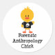 A cute yellow chick wears a skull bone tee on forensic anthropology chick t-shirts, tees, apparel, clothing and more items that make a cute gift for a forensic anthropology professor, researcher, major or grad. Click on the following link to see all of our Chrissy H.