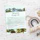 Enjoy playing this Advice for the Mommy-to-be baby shower game. This is an adventure begins theme, with a momma and baby bear on back. This design has rustic forest, watercolor mountains with reflecting lake in front, and pine trees surrounding the lake. Baby bear cub on back with game.
