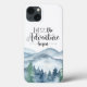 Let the adventure begin theme watercolor iphone case for outdoor adventurers who love the wilderness, backpacking, camping, and nature. Trendy mountains woodlands style.